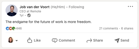 “Offices are necessary for many reasons. It is nice to come together and work in person occasionally, and for certain types of work it is absolutely necessary,” said Job van der Voort CEO and co-founder of Remote —a platform that helps companies onboard and pay remote employees from anywhere in the world.