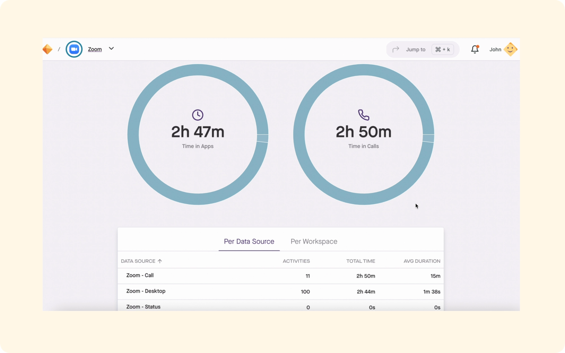 If you use multiple tools for your Calls such as using Zoom meetings and Slack huddles, then you’d want aggregated call data so that you know how much time you’ve spent in Calls altogether.