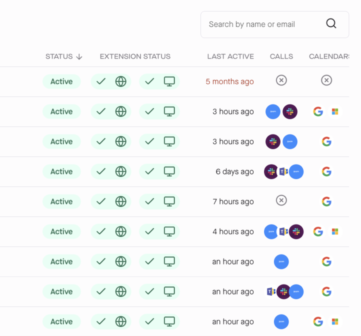 In your account, the status of each user can be viewed so you can see what integrations they have authorized and if they are using the extensions. As you are paying for them to use the app, if they are not getting value out of it or have not taken the time to get set up, you can nudge them to see if they need help.
