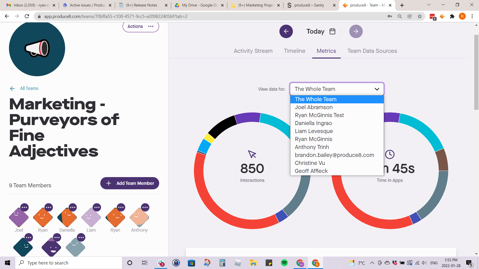 We can now show all administrators of Produce8 how features are being adopted by their employees. This helps you understand if they have completed setup, downloaded extensions, added apps, and created workspaces.