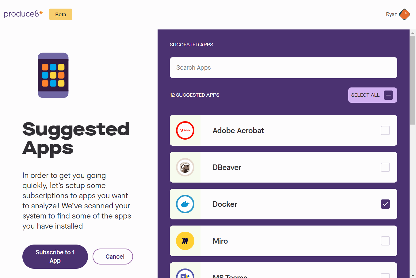 If you don’t see the desktop app subscription you want in our catalog, you can use our discovery feature to listen in and list the apps you have recently used. You can then select the ones you want to add to your account.