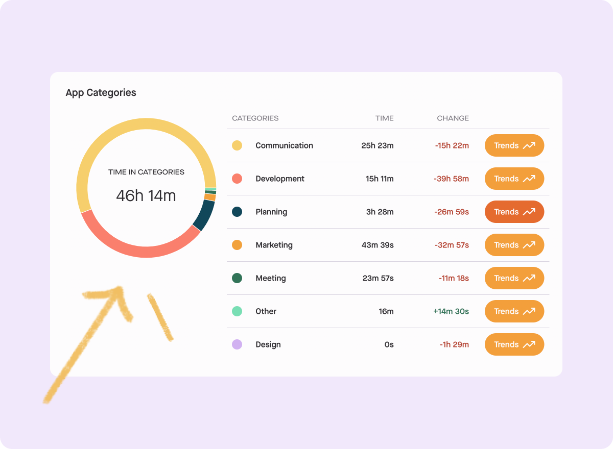 Workspace Metrics will now include a breakdown of time spent in each category. You can click on it to view the time series Trends associated with each category.