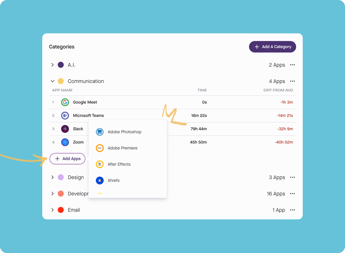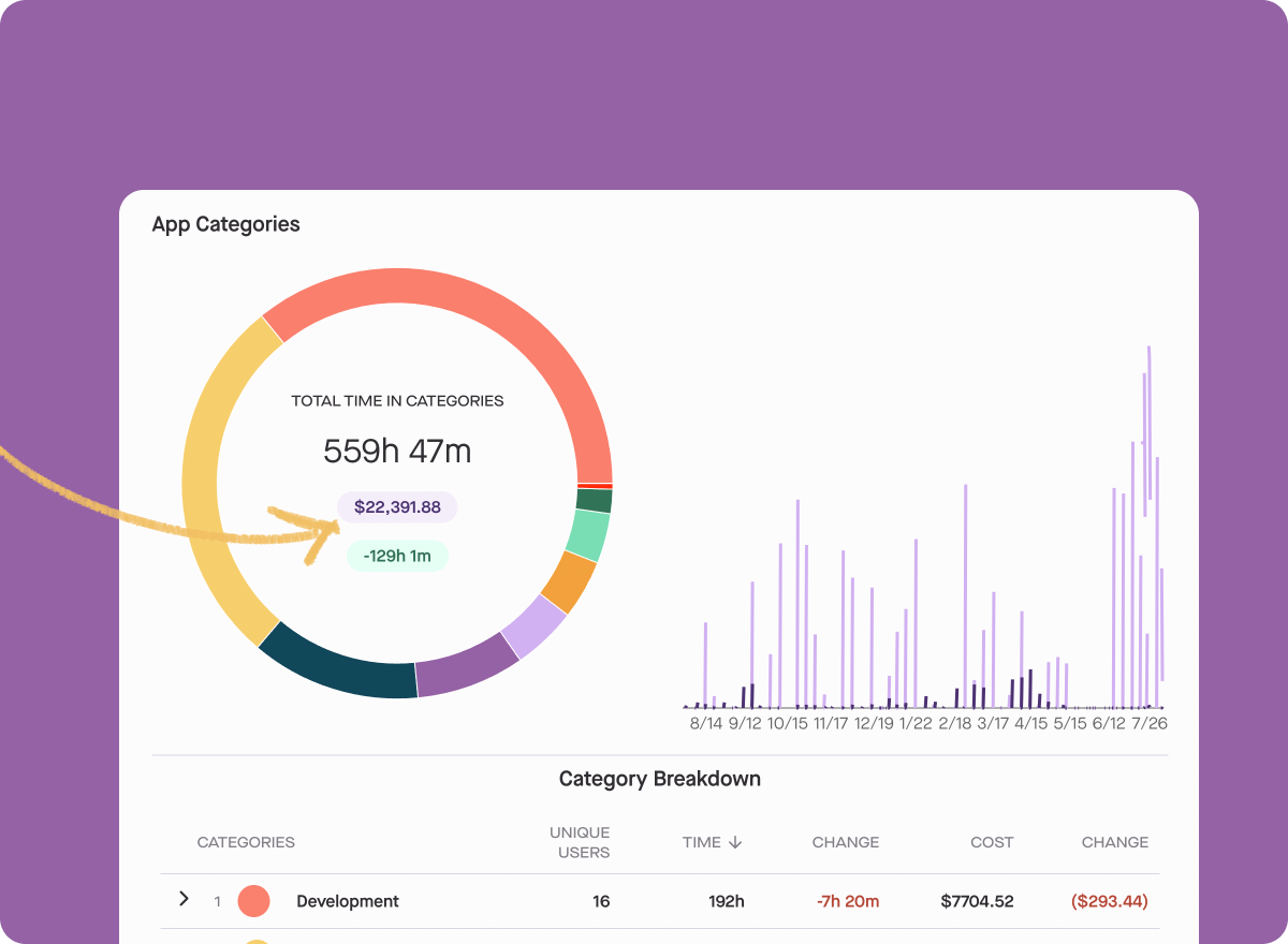 You can now create custom App Categories and group apps for the same purpose or workflow. You can see stats across your categories within your Daily Summary, Account Metrics and Dashboard, Workspace, and also on the Categories Home page.