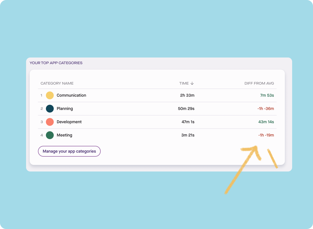 Your Daily Summary report will now include a breakdown of time spent in each category. You can click on it to view the time series data associated with each category.