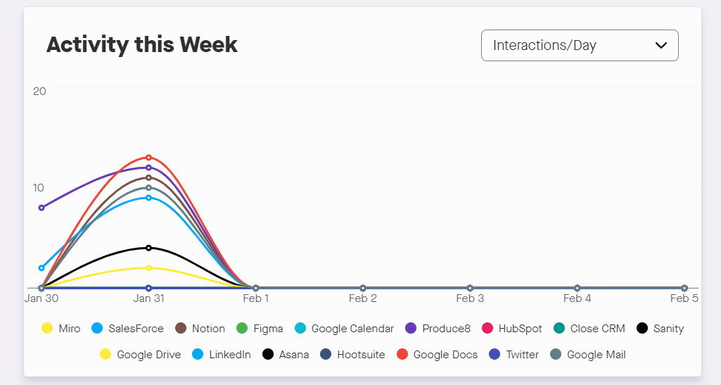 Fitness tracking apps, personal digital wellbeing tools and financial management apps have proven that self awareness is a big component of laying the foundation for behavior change. Produce8 works on the same principles, but for the workday.