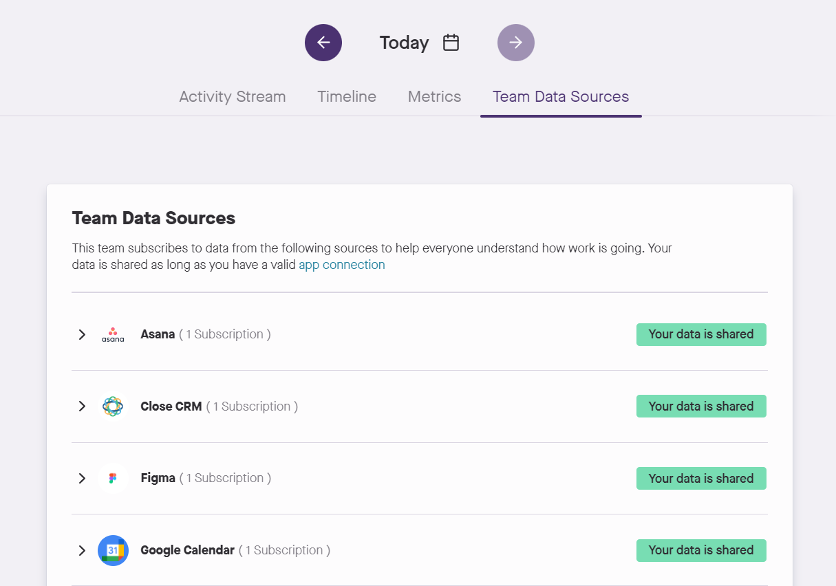 A "Team Data Sources" tab has been added to the team page, next to the metrics tab.